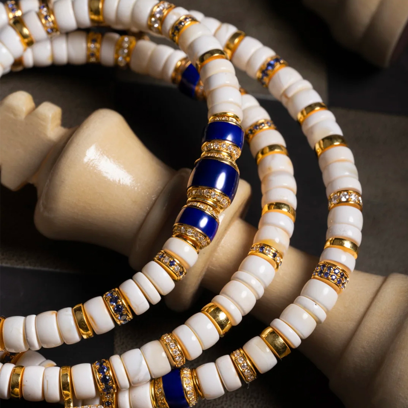 On the dazzling stage of jewelry, the Amber Lapis Lazuli Diamond Bracelet Set shines like a brilliant pearl. It seamlessly blends the warmth of ancient materials with the luxury of modern design, composing a magnificent symphony that transcends time and space, bestowing unparalleled elegance and charm upon its wearer.