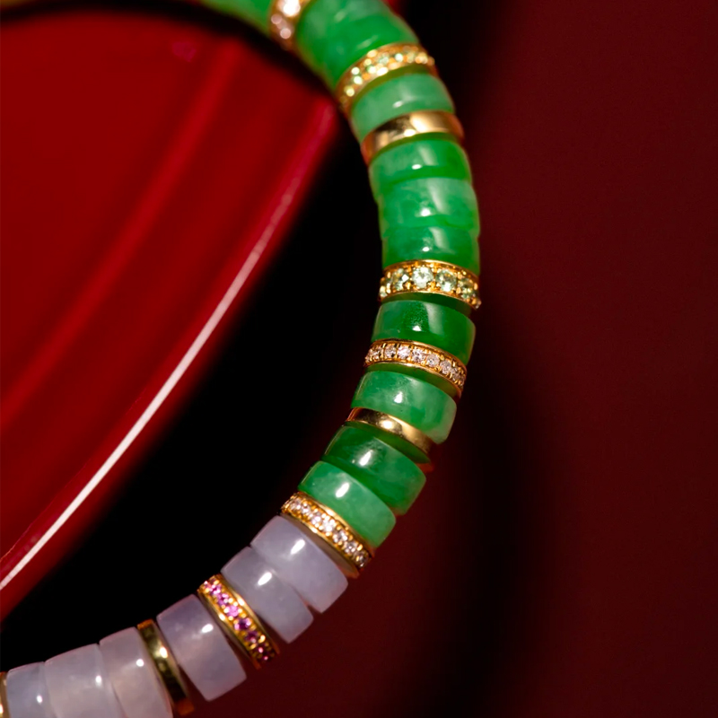 Vibrant hues and delicate texture—this tri-color jade bracelet encapsulates half of China’s aesthetic history, with millennia of mountain and river spirit hidden within its strands;