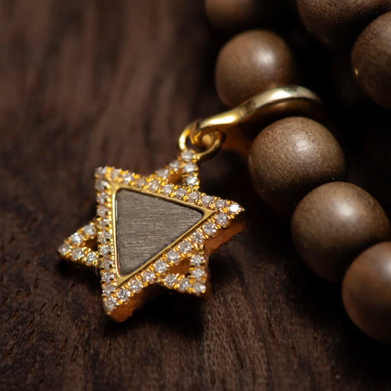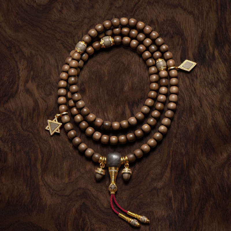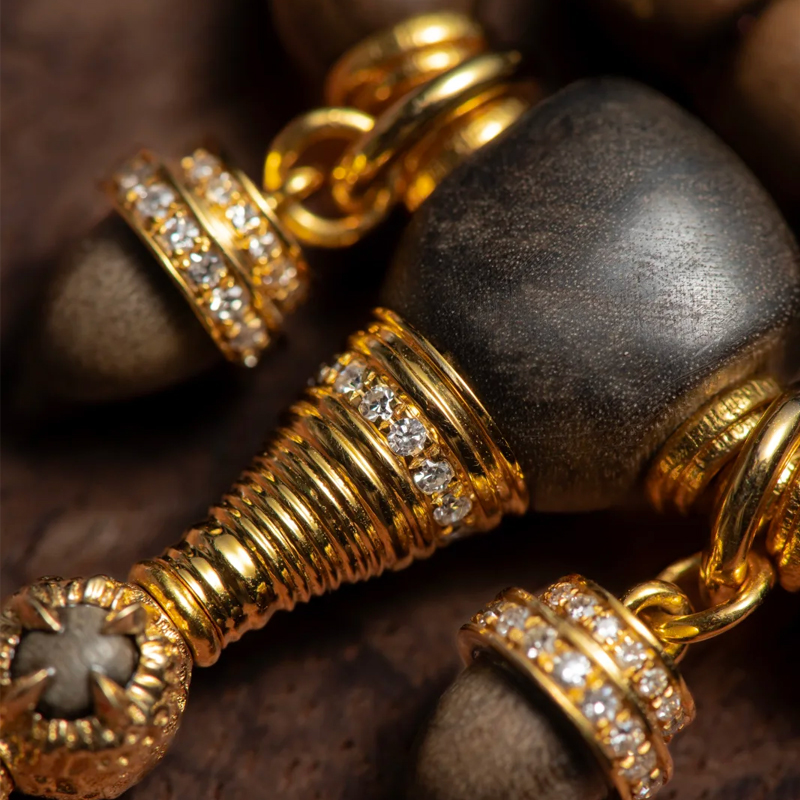 The original design is another standout feature of this bracelet. All accessories are custom-made, featuring exquisite full-diamond setting that sparkles brilliantly yet retains elegance. The clever pairing with wood of the same material achieves a perfect visual balance of restraint, simplicity, sophistication, and refinement. Every bead and accessory combination is meticulously considered, showcasing the charm of traditional bead strands while incorporating modern fashion elements.