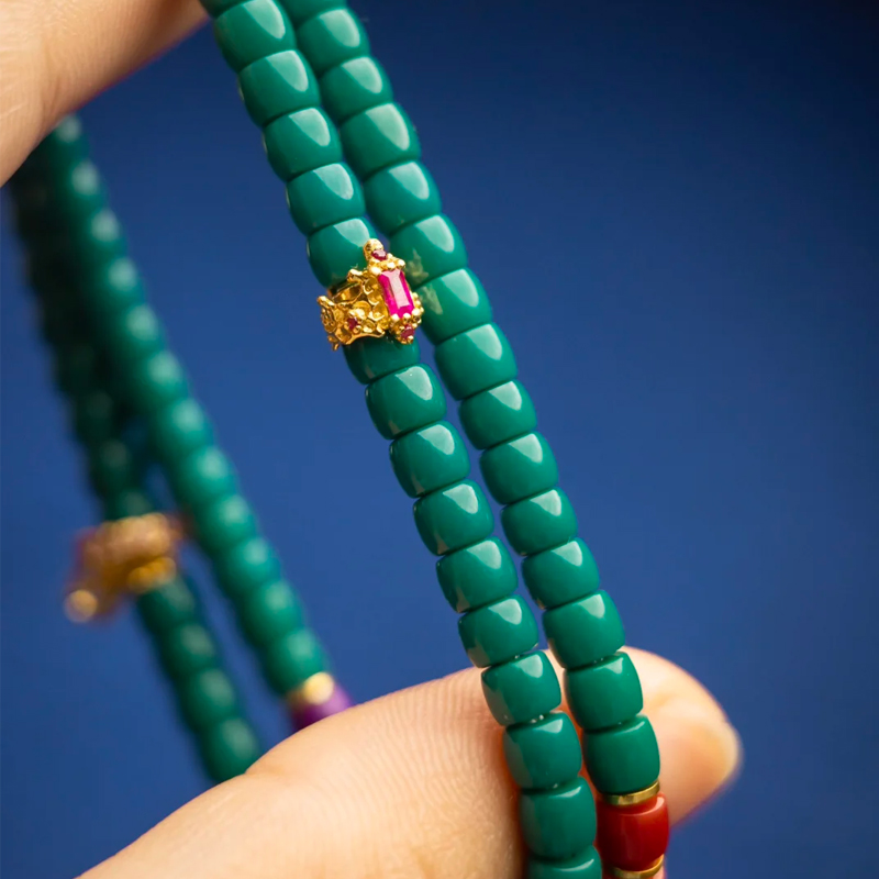 Culturally, the deep green hue traditionally symbolizes steadiness, restraint, and longevity, while the multicolored beads represent life’s richness and hopeful aspirations. Wearing this bracelet is not merely a pursuit of beauty but a celebration of cultural heritage and a longing for a fulfilling life. It serves as a spiritual anchor, accompanying the wearer through every stage of life and witnessing life’s joys and sorrows.