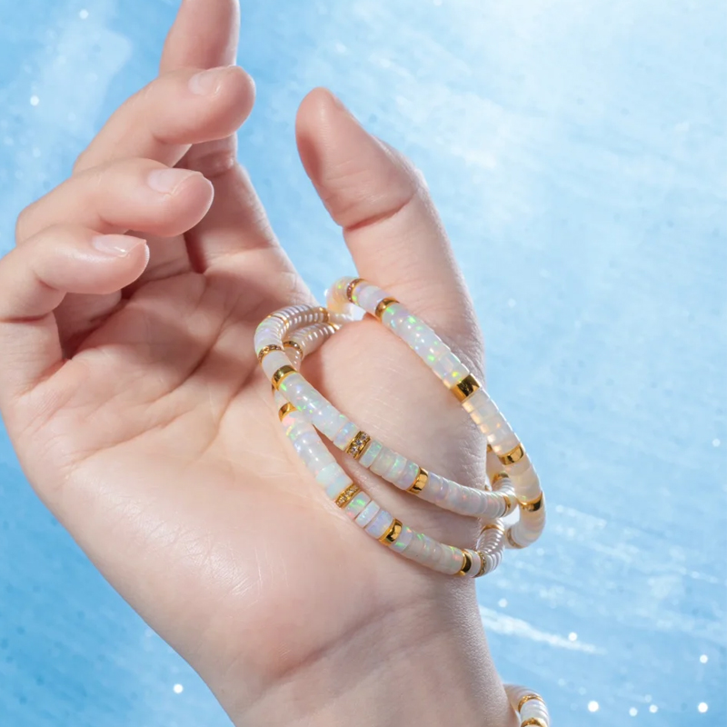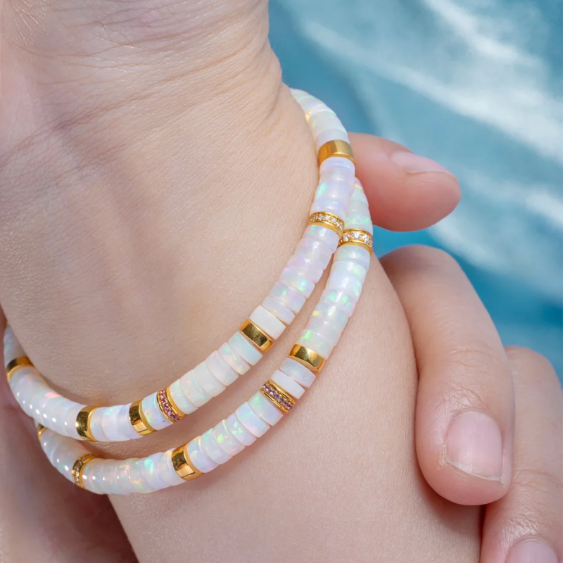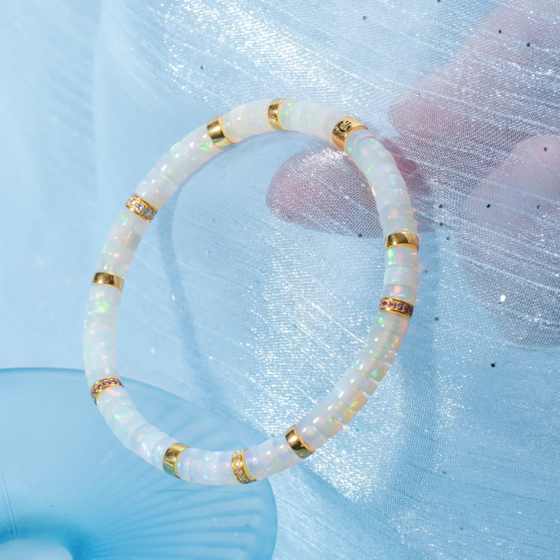 As light and shadow intertwine, the bracelet radiates multiple iridescent hues—like a cascading starry river or dancing aurora—infusing the wrist with vibrant vitality. The 5mm bead diameter design preserves opal’s dazzling play of light while ensuring everyday comfort. Whether worn alone or layered, it exudes timeless elegance. More than mere jewelry, it embodies the romance of a “universe in the palm of your hand,” keeping the brilliance of the stars ever by your side.