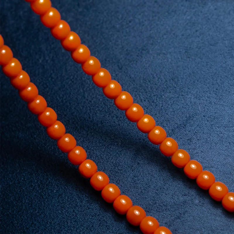 A flawlessly pure South Red bead strand is a dual gift from time and mineral veins—demanding pristine origins, uniform coloration, and absolute freedom from crystal impurities or cracks. Even selecting one bead in a hundred proves exceedingly difficult. Only seasoned connoisseurs comprehend the value of such exacting standards. This original design, the 【South Red × Turquoise】 set, features “Persimmon Brocade” monochrome South Red as its foundation. Its hue resembles a fully ripened persimmon—steady yet vibrant, with a texture as smooth as congealed fat and a touch as warm as jade.
