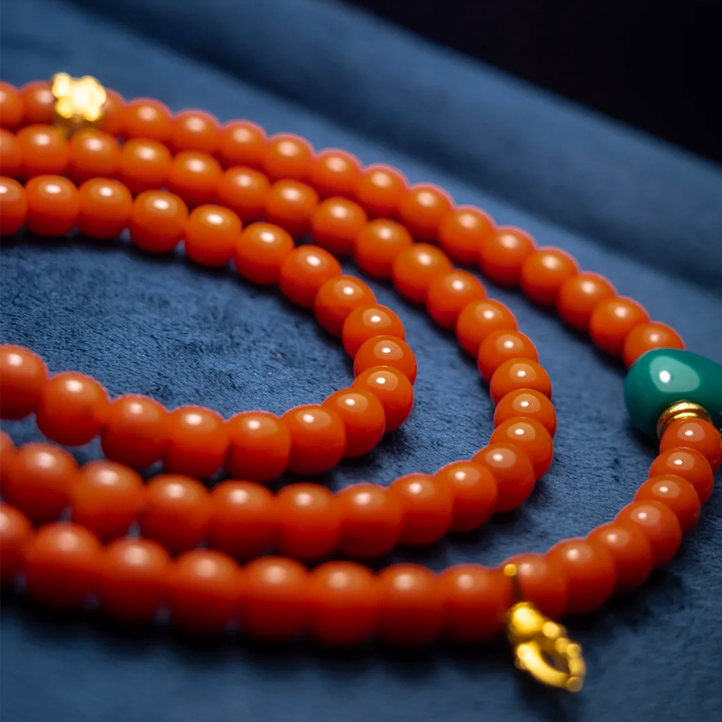 From material selection to final assembly, each step adheres to the rigorous standards of ancient techniques while embracing contemporary simplicity and elegance. We recreate order through artistry and engage with history through quality—this strand of Nanhong and turquoise, crystallizing time, is not merely an elegant accessory but a sincere tribute to Eastern aesthetics.