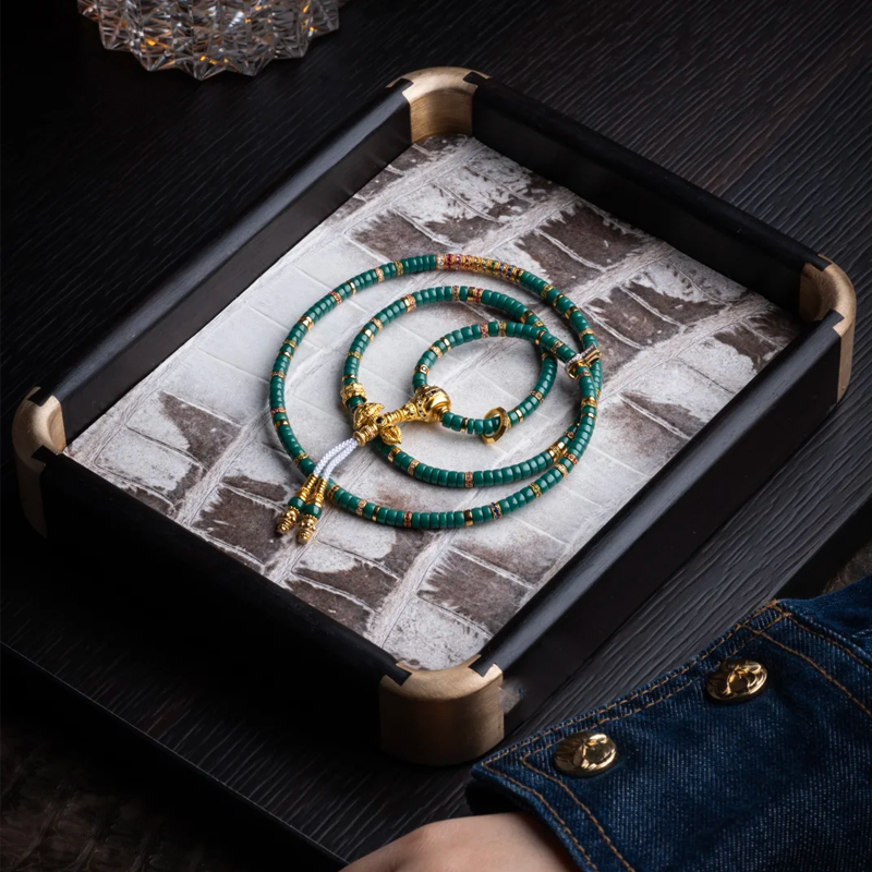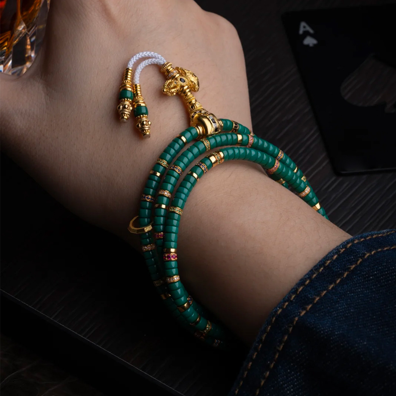Amidst the bustling modern metropolis, people constantly seek objects that can serve as spiritual anchors and showcase unique taste. Our Turquoise and Gold Diamond 108-Bead Bracelet Set is precisely such a treasure, embodying cultural depth, exquisite craftsmanship, and noble materials.