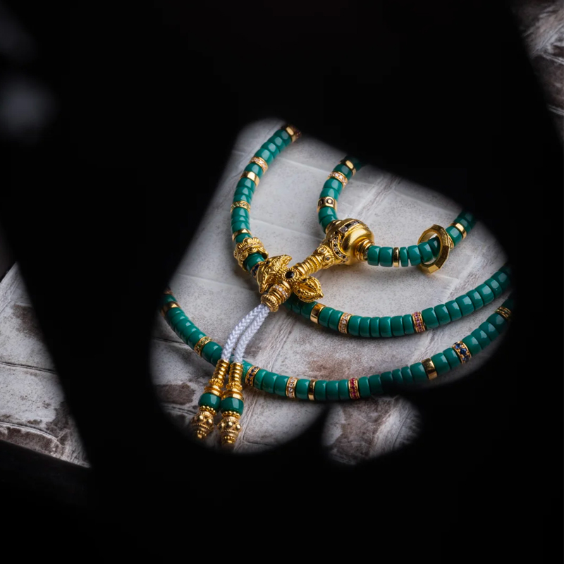Whether worn daily to express personal style or as an accent for special occasions to enhance noble presence, this Turquoise & Gold Diamond 108-Bead Set is an exceptional choice. It transcends mere jewelry, embodying cultural heritage and spiritual symbolism.