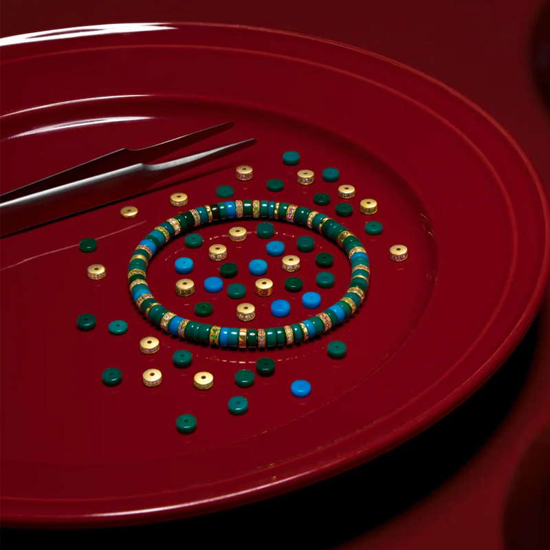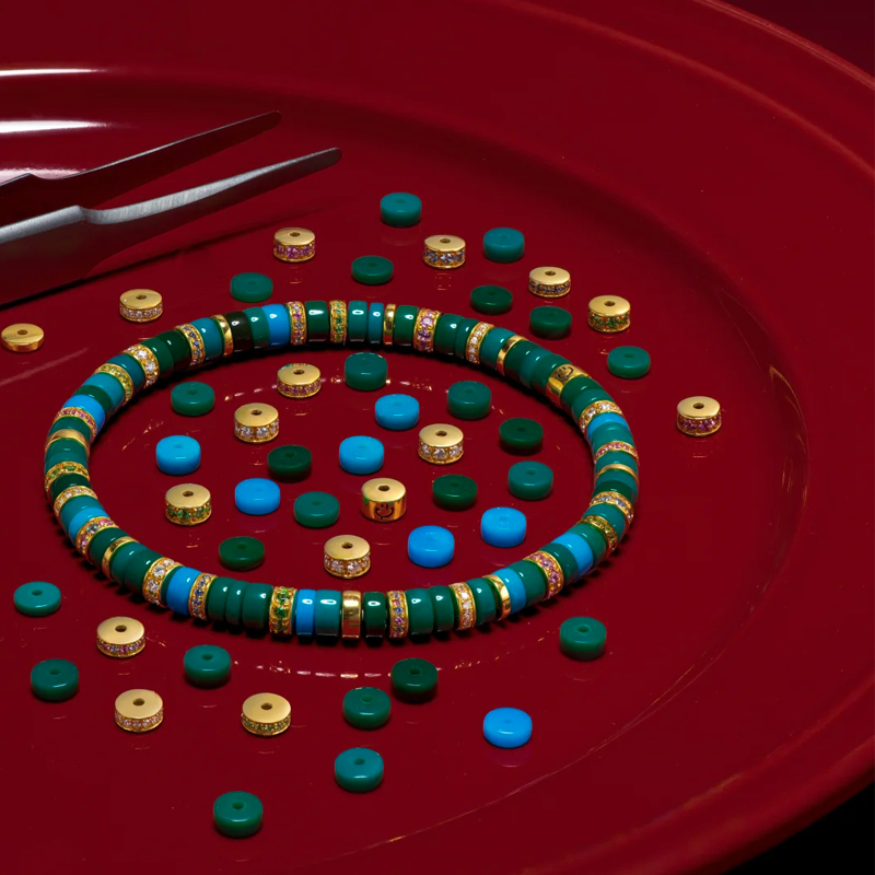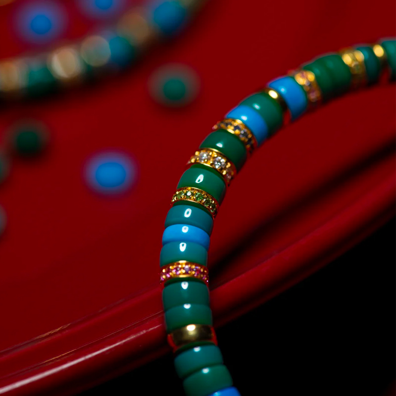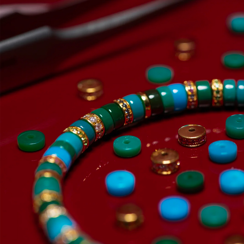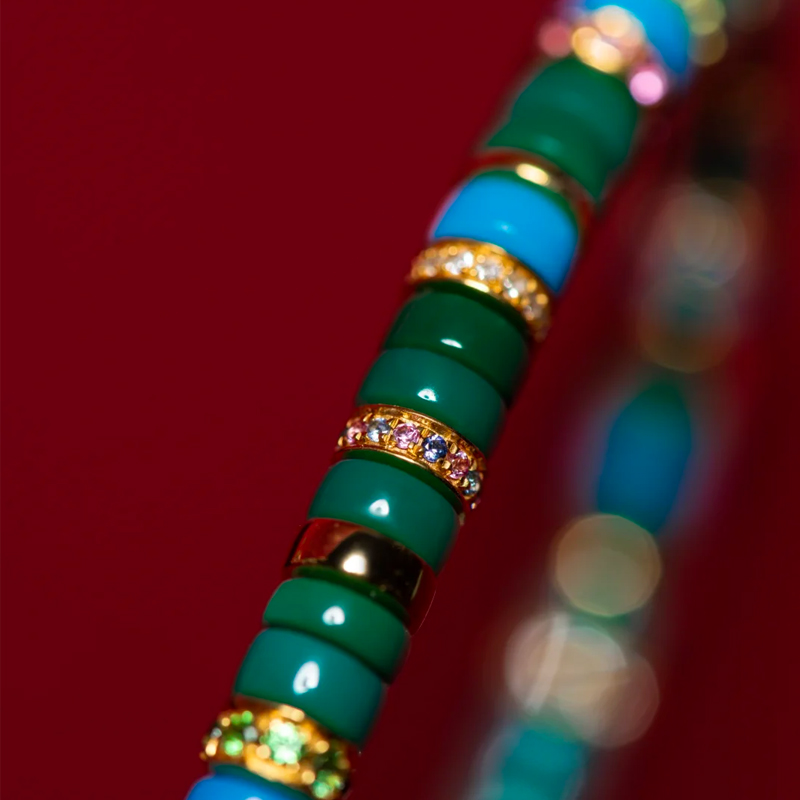 This Palette 2.0 [Turquoise & Gold Diamond Bracelet] is a visual feast of turquoise. It brings together two extreme color palettes—vibrant blue and deep oil green—uniting both signature hues of turquoise in one piece. The intense color contrast delivers an unparalleled visual impact.
