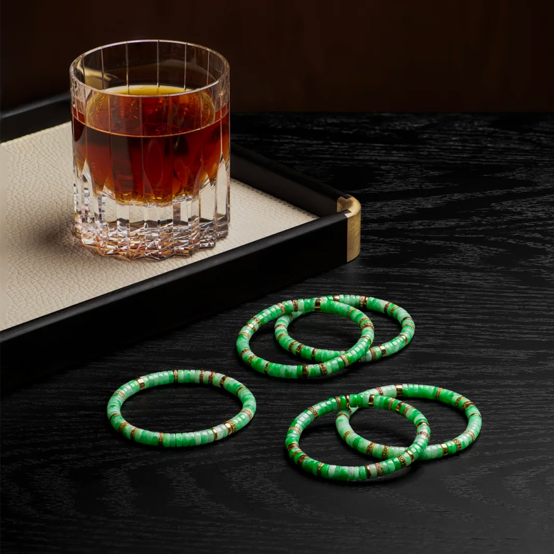Each jadeite bead in this bracelet is meticulously carved from premium Yang Green Jadeite rough stones. Their color is vivid and rich, a bright, lively green reminiscent of spring’s fresh new shoots, brimming with vitality. The green hue is evenly distributed, emitting a soft, captivating luster under natural light—like sunlight dancing across a jade-green lake, creating mesmerizing ripples that enchant the soul.